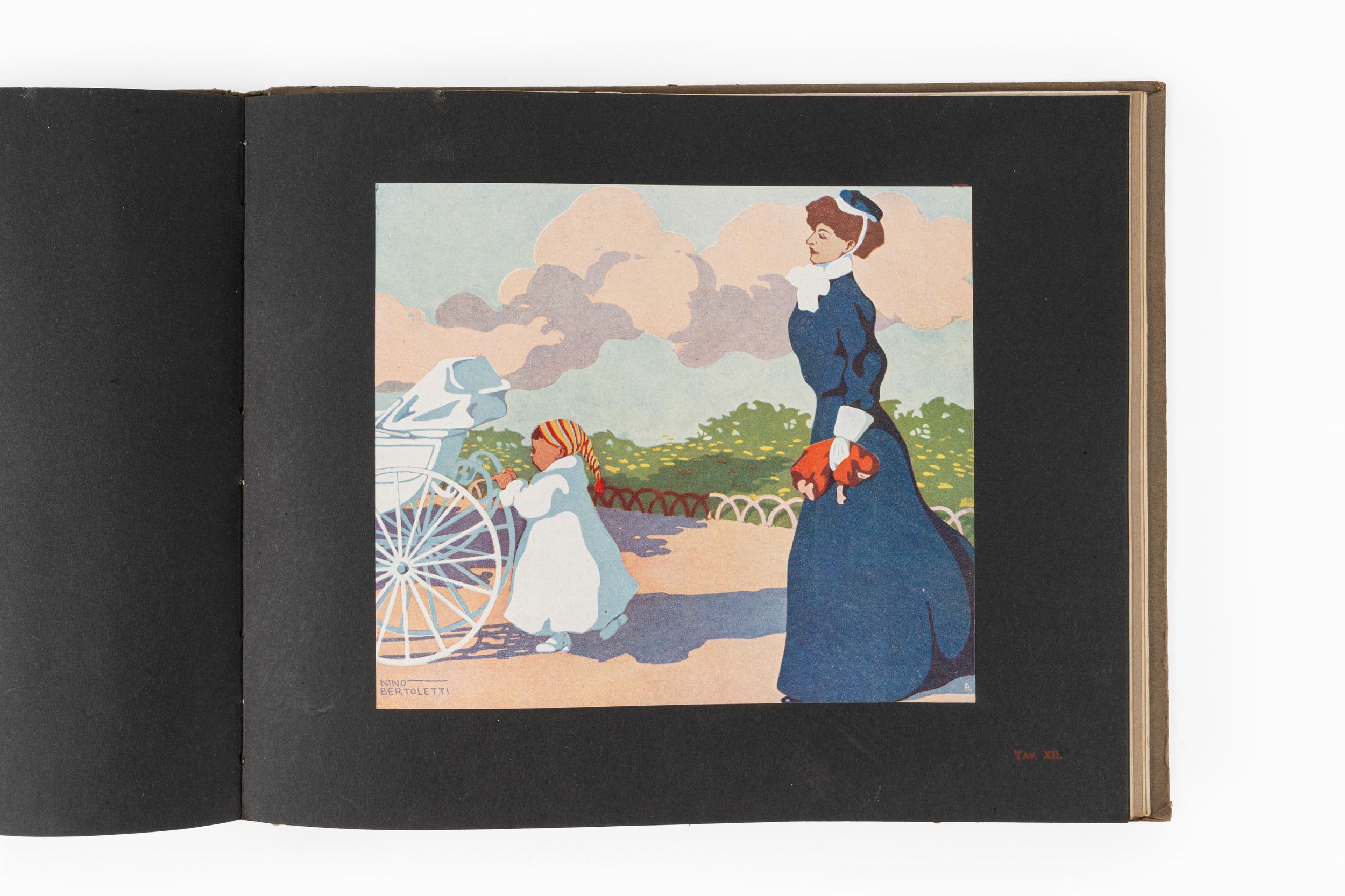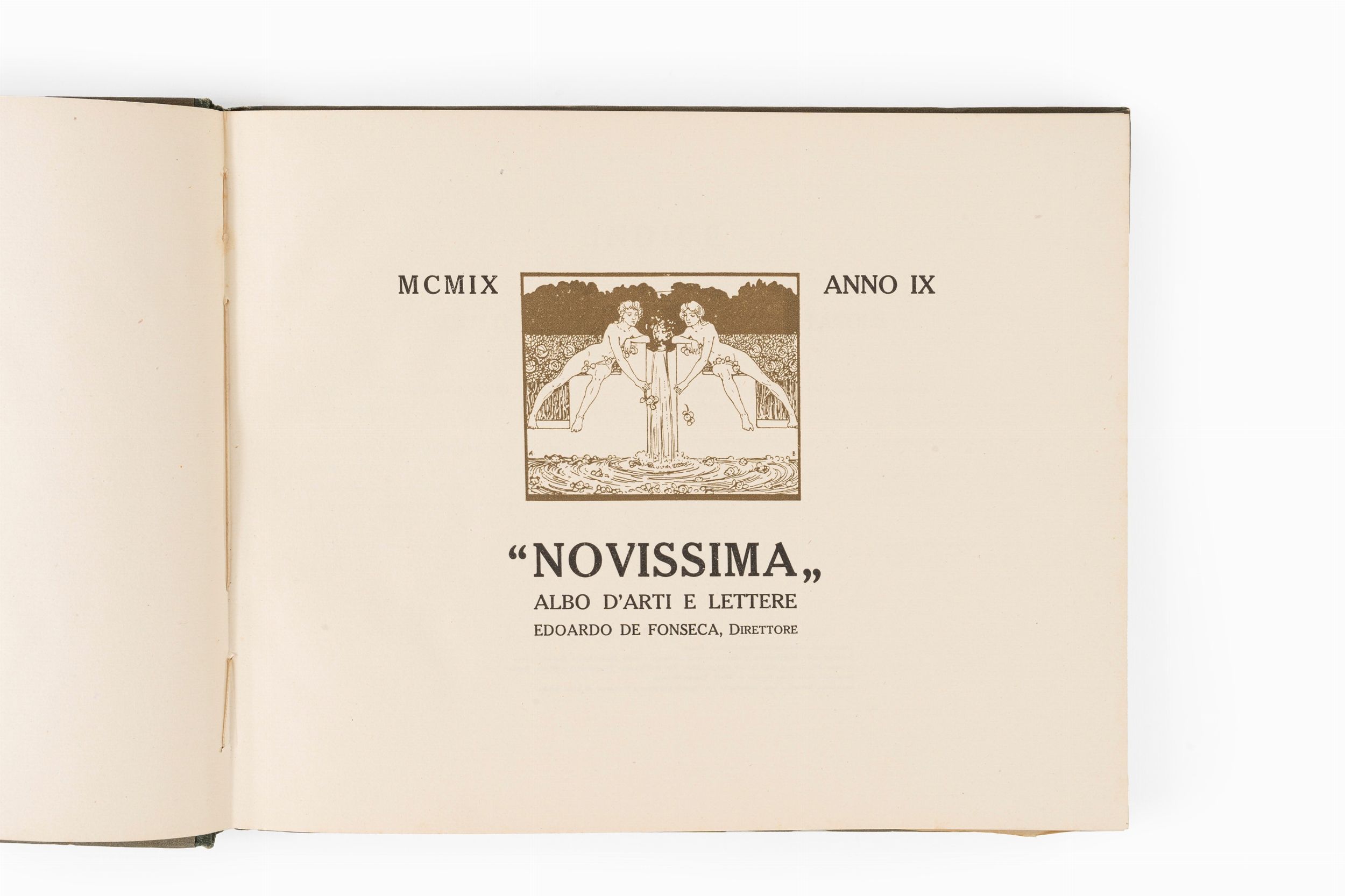 1902 Milano (poi Roma), Società Editrice Novissima, anni 1902, 1905, 1907, 1909, 1910. 5 volumi in 4° oblungo. Legature editoriali in mezza tela con piatti illustrati da elegante grafica liberty. Qualche strappo con lievi mancanze al dorso dell'anno decimo, piccole abrasioni, macchie ed usure del tempo.