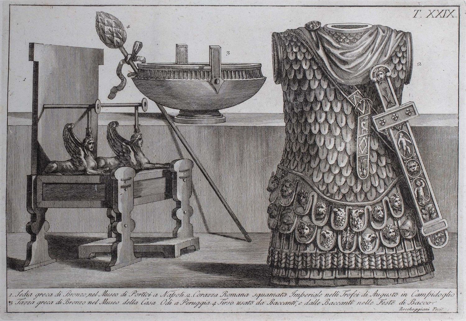 1804 [Roma], Giacomo Raffaelli in Piazza di Spagna, [1804]. In 4° oblungo. 2 voll. Ciascun volume con frontespizio inciso e 100 tavole numerate I- C, al di sotto della parte incisa la legenda, firmate in lastra dall'autore in basso a destra, in fine 10 pagine con il testo esplicativo delle tavole e l'indice, leggere fioriture ed arrossature su qualche carta, lievi lacune ai margini di poche carte, legatura coeva in mezza pergamena, al dorso tassello in marocchino verde con autore e titolo impressi in oro, mancanze ai piatti.