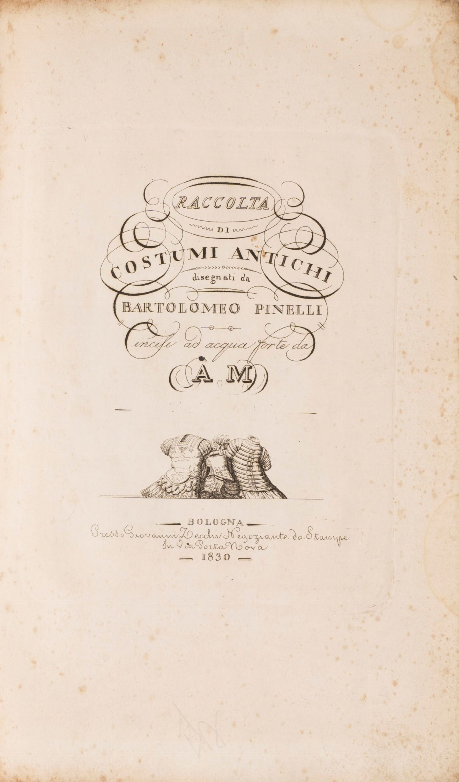 1830 Bologna, Giovanni Zecchi, 1830. 8°. Legatura recente in mezza pelle con titoli impressi in oro al dorso, piatti in carta marmorizzata. Illustrato da un frontespizio, antiporta e 100 tavole numerate fuori testo. Esemplare in barbe. Qualche arrossatura.
