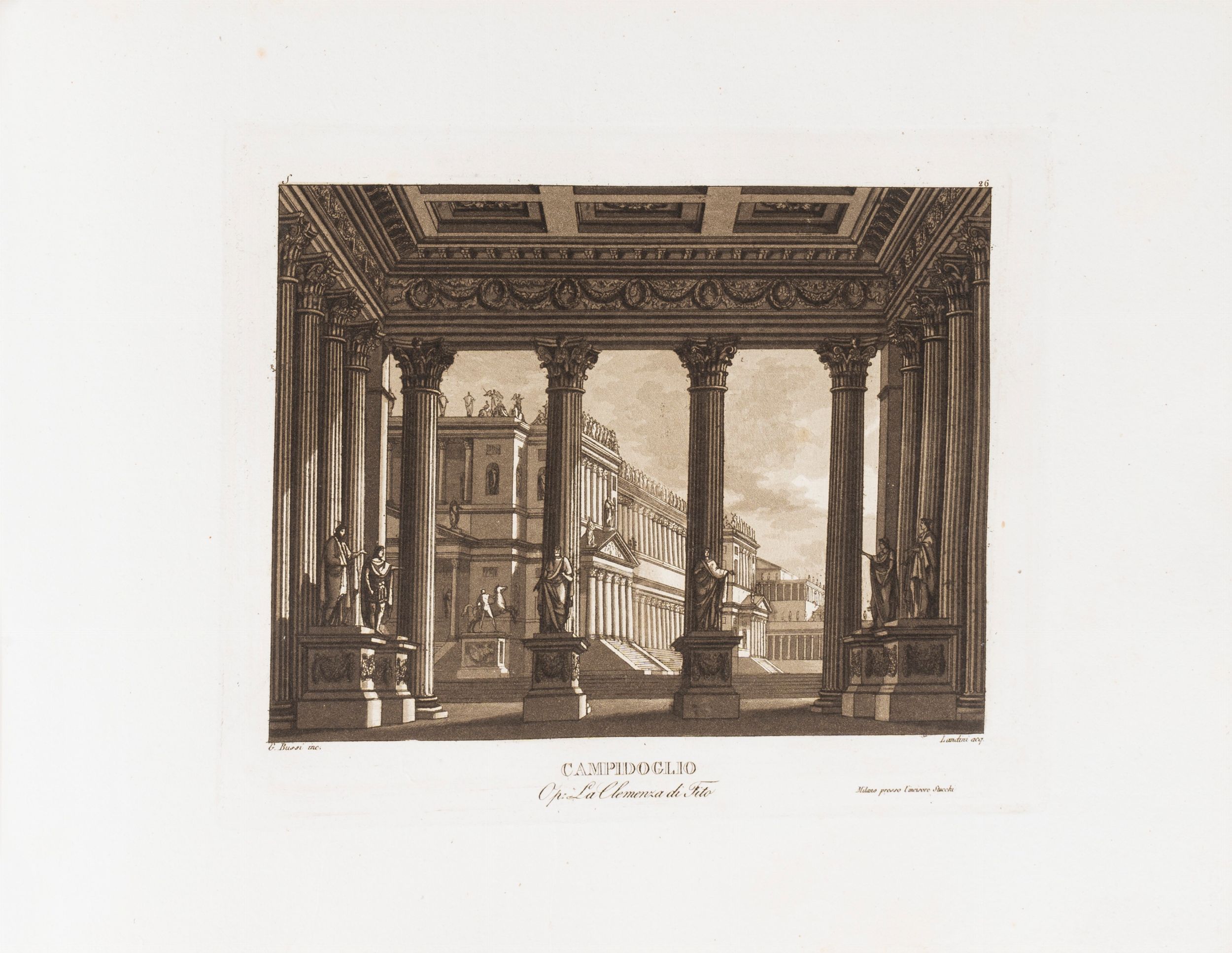 1819 Milano, Stucchi, [1819]. In 4° oblungo, 215 x 290 mm. 2 volumi su tre, due frontespizi relativi alla Parte Prima e Seconda, 200 tavole numerate in alto a destra, marginali arrossature altrimenti ESEMPLARE PERFETTO , legatura coeva in mezza pelle verde e cartone marmorizzato, titoli in oro al dorso, tagli a spruzzo verdi.