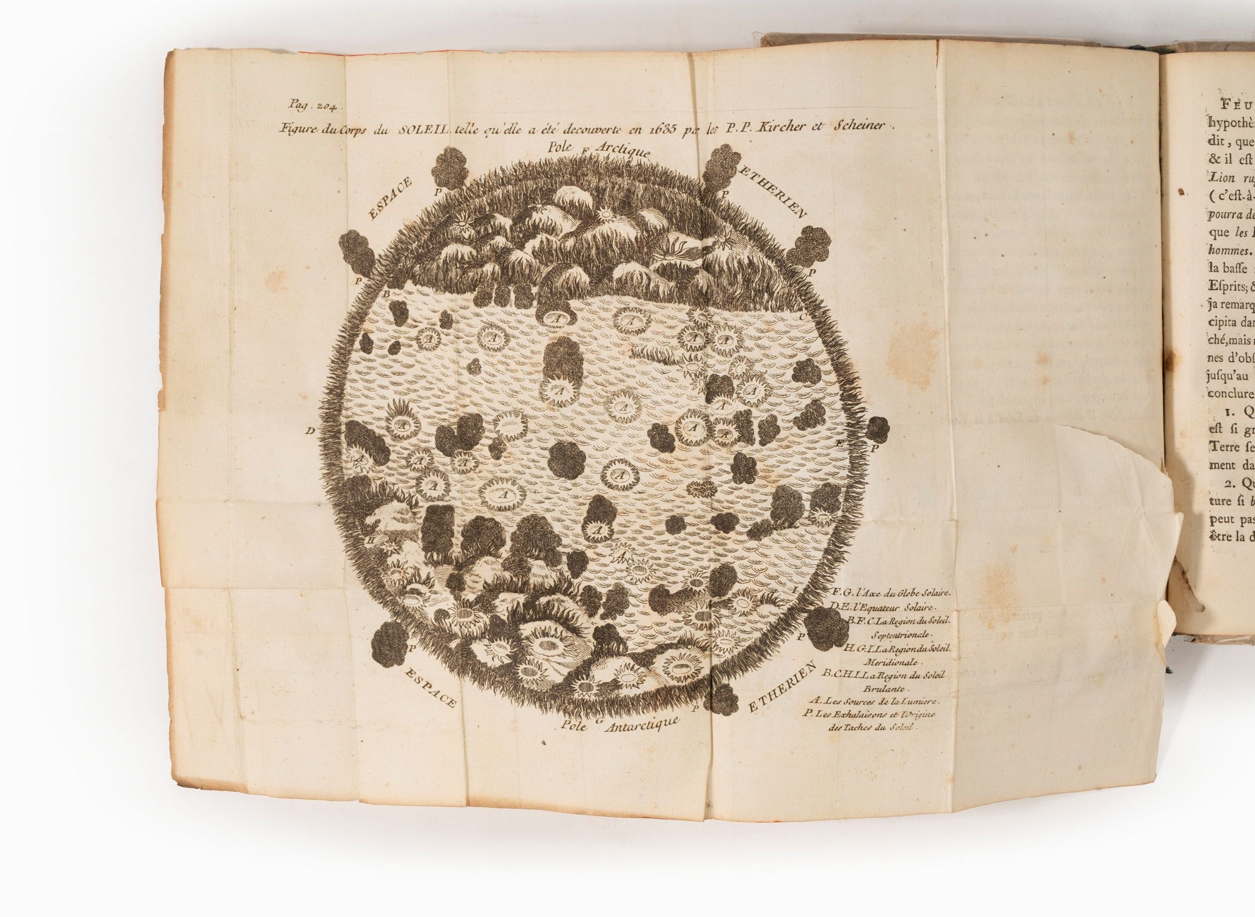 1757 In 8°. Due tavole ripiegate nel testo raffiguranti il cielo con le orbite planetarie e il sole, lieve strappo marginale alla seconda tavola, fori di tarlo almargine interno di alcune carte, legatura coeva in pergamena rigida con titolo su tassello rosso al dorso, tagli a spruzzo rossi.