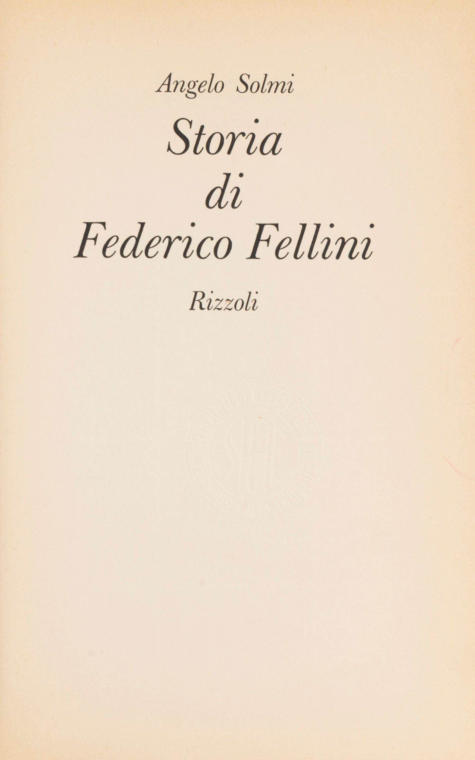 1962 Milano, Rizzoli, 1962. In 8°. Legatura editoriale illustrata in cartoncino rigido, minimi segni di usura. Dedica di Fellini alla carta di guardia. Insieme nel lotto lettera manoscritta di Federico Fellini con relativa busta, indirizzata alla Sig.ra Fausta Leoni e datata 14 gennaio 1974.