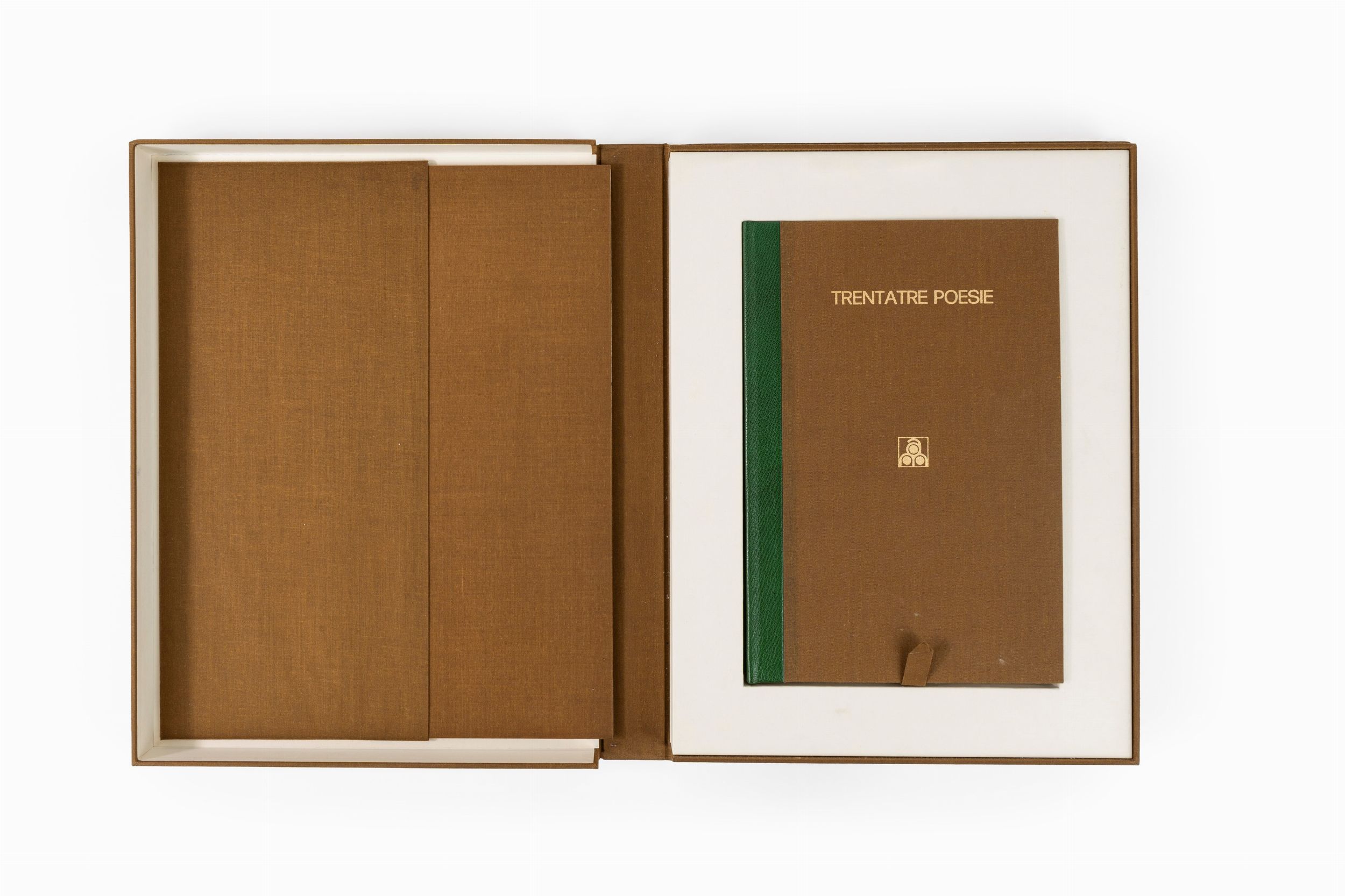 1973 Milano, M'Arte Edizioni, 1973. In 8° grande. Legatura editoriale in mezza pelle con piatti in tela e custodia in tutta tela. La nostra copia appartiene alla tiratura di 25 esemplari su 150 accompagnati da una seconda serie tirati su Japon nacré in 4° numerati e firmati dall'autore. Qualche segno del tempo.