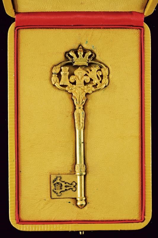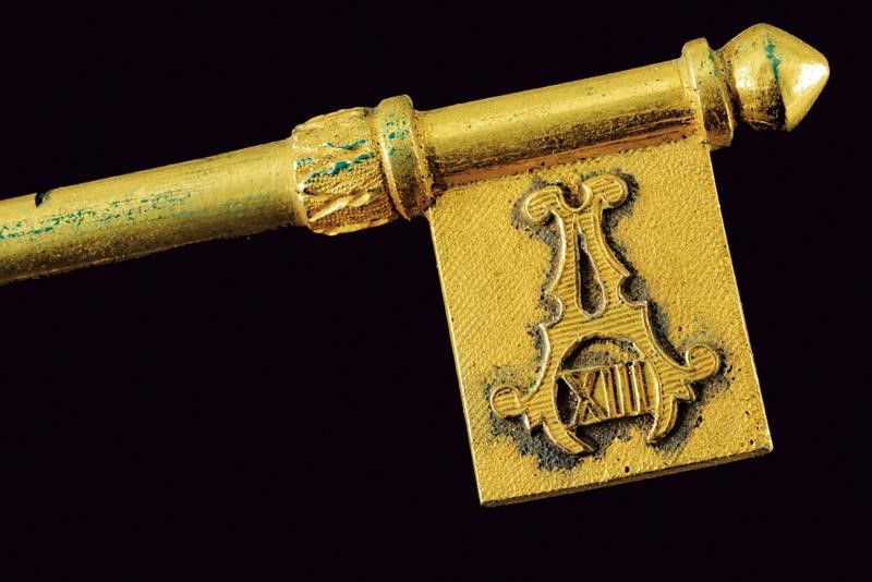 primo quarto del XX Sec. In argento dorato. La testa con le Armi di Spagna sormontate da corona, sul pettine il monogramma di re Alfonso XIII (1886 - 1931). In astuccio.