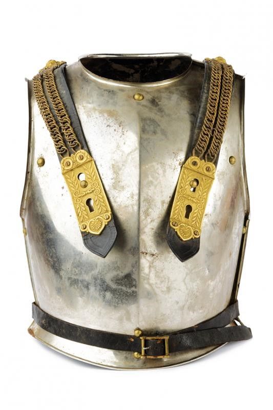 Francia, altezza 45 cm. Prima metà del XX Secolo Con leggera struttura in ferro nichelato. Fornimenti in ottone. La schiena completa di cinghie in cuoio corazzate con anelli in ottone. Alcune zone rugginose, soprattutto all'interno. Epoca Terza Repubblica.