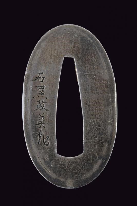 Fuchi-kashira con firma Ishiguro Masayoshi con kao