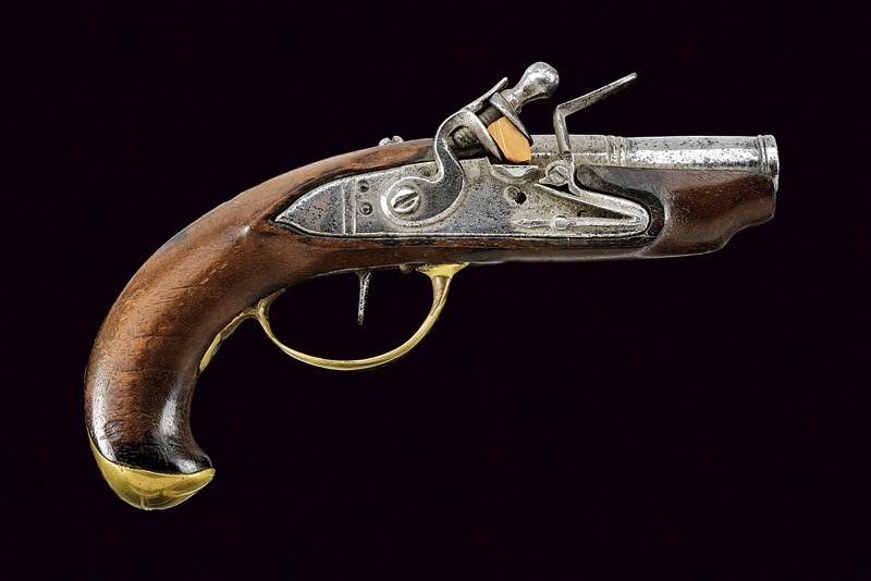 Canna lisca a due ordini con volata a cannoncino, cal. 10 mm; batteria (riconvertita?) a pietra focaia. Cassa in legno con fornimenti in ottone. Nata senza bacchetta.
