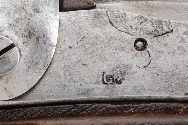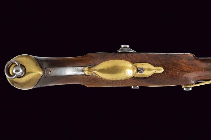 Stato Pontificio, lunghezza 37 cm. Canna tonda liscia con culatta ottagonale, cal. 18 mm. Batteria convertita a luminello con cartella piatta recante resti di marcatura 'GM' per Mazzocchi; scodellino in ottone. Mezza cassa in legno (restauro al muso); fornimenti lisci in ottone, la contropiastra marcata '80'. Bacchetta e anello di sospensione in ferro.