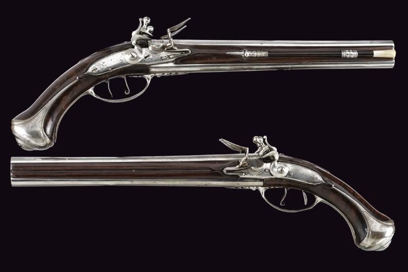Rarissimo paio di pistole a pietra a due canne di Boiron