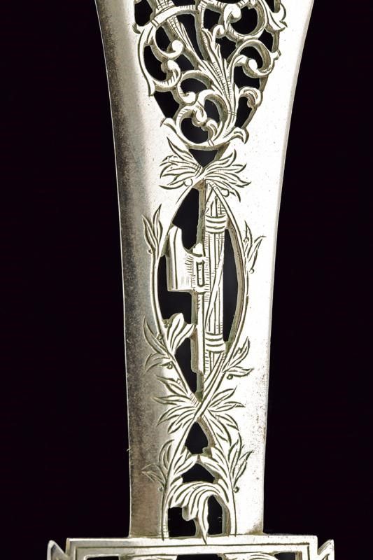 1930/40 In acciaio riccamente traforato con fascio e decori floreali. La punta marcata 'N. MASTROPIETRO CAMPOBASSO'.