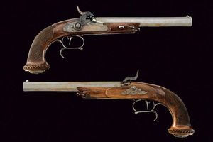 Magdeburg, lunghezza 37.5 cm. Belle canne ottagonali, rigate, brunite, firmate 'KAMOLZ IN MAGDEBURG' fra riccioli [..]
