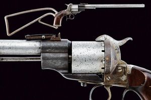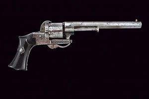 Belgio, lunghezza 26 cm. Canna rigata, ottagonale, con mirino in ottone, cal. 7 mm; tamburo liscio a sei colpi, [..]