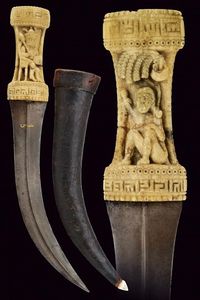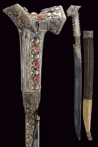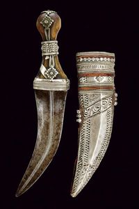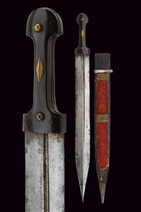 Penisola Araba, lunghezza 29 cm. Fine del XIX Secolo Larga lama curva a due fili con nervatura centrale. Impugnatura [..]