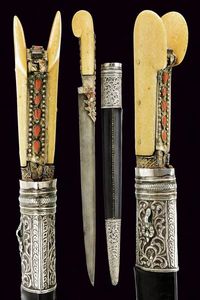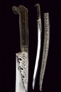 India Moghul, lunghezza 36.6 cm. Prima metà del XIX Secolo Lama leggermente curva e lievemente costolata in mezzeria. [..]