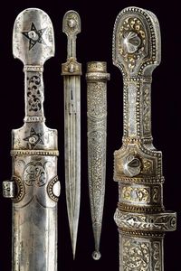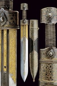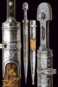 Caucaso, lunghezza 50,5 cm. Fine del XIX Secolo Lama dritta a due fili, recante sul lato anteriore un doppio sguscio [..]