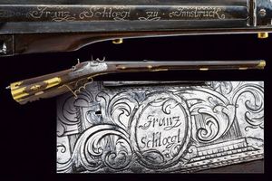 Innsbruck, lunghezza 125 cm. Bella e pesante canna rigata, ottagonale, brunita, firmata in argento 'Franz Schloegel [..]