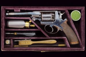 Regno Unito, lunghezza 29 cm. Canna ottagonale, rigata, con alzo e mirino, cal. 11 mm; tamburo liscio a cinque [..]