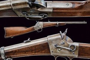 USA, lunghezza 86.5 cm. 1865 circa Canna tonda, rigata munita di alzo variabile e mirino, cal. 50 rimfire. Otturatore [..]