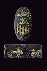 Giappone, dimensioni 8 x 8.2 x 0.3 cm. Periodo Edo (1603-1867) In ferro con dettagli in oro, rame ed argento, [..]