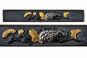 Giappone, lunghezza 3.3 - 3.8 cm. Periodo Edo (1603-1867) In shakudo nanako, con bellissimi dettagli in oro ed [..]