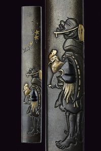 Giappone, lunghezza 3.4 - 3.7 cm. Periodo Edo (1603-1867) In shibuichi, con dettagli in oro, argento e shakudo. [..]