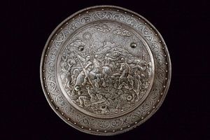 Italia settentrionale, diametro 56 cm. 1620 circa In ferro, di forma circolare e convesso, con bordo rilevato [..]