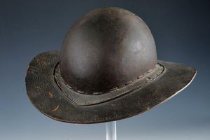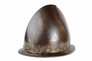 Germania del Sud, altezza 28.5 cm. 1600 circa Coppo in ferro lavorato in un solo pezzo con la tesa. Al sommo con [..]