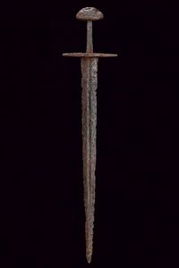 Europa, lunghezza 87,5 cm. XIII Sec. Lama dritta a due fili convergenti, con sguscio centrale che corre per buona [..]