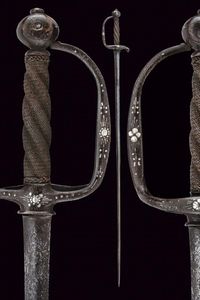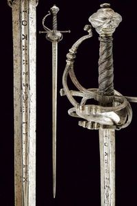 Italia settentrionale, lunghezza 127 cm. metà del XVI Sec. Lunga lama dritta a stocco, recante sguscio al forte [..]