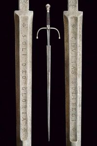Italia settentrionale, lunghezza 114.5 cm. 1620 circa Lama dritta a due fili di sezione esagonale, con duplice [..]