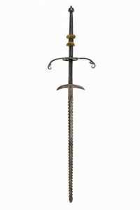 Germania, lunghezza 180 cm. 1620 - 1640 Lama dritta a due fili fortemente ondulati. Largo tallone suddiviso in [..]