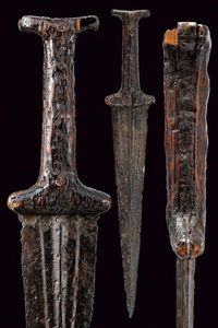 Italia, lunghezza 21.5 cm. XVII Secolo Lama dritta di sezione triangolare. Fornimento in ferro massiccio, brevi [..]