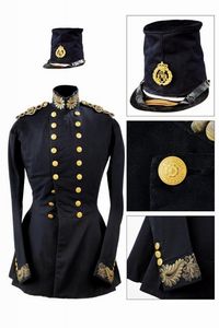 Regno di Sardegna, altezza 83 cm. 1848 circa Il cappello in tessuto turchino scuro con visiera (parzialmente staccata) [..]