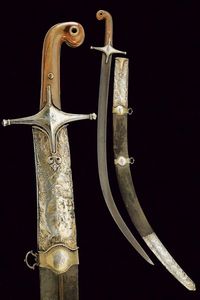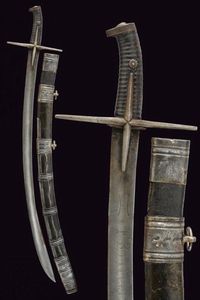 Impero Ottomano, lunghezza 92.5 cm. Prima metà del XIX Secolo Lama piatta curva, a un filo, in finissimo damasco. [..]