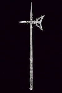 Europa orientale, lunghezza 75.7 cm. XVI Sec. Scure con taglio concavo, traforata, intagliata ed incisa. Penna [..]