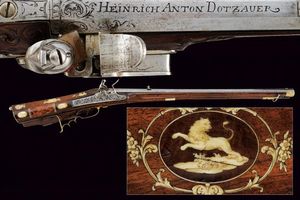 Austria, lunghezza 106 cm. Pesante canna ottagonale, rigata, firmata 'HEINRICH ANTON DOTZAUER', finemente incisa [..]