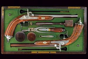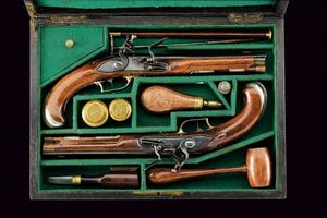 Dublino, lunghezza 38 cm. Canne ottagonali, damascate, dotate di alzo e mirino, con profonda marca foderata in [..]