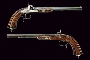 Berna, lunghezza 32 cm. Canne rigate (anime pulite, rigatura ben visibile), ottagonali, firmate 'Ulrich', una [..]