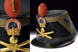 Regno di Sardegna, altezza total 24 cm. Metà del XIX Secolo Corpo rivestito in feltro nero, completo di tutti [..]