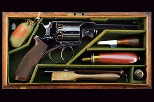 Regno Unito, lunghezza 29 cm. Canna ottagonale, rigata, con alzo e mirino, cal. 11 mm; tamburo liscio a cinque [..]