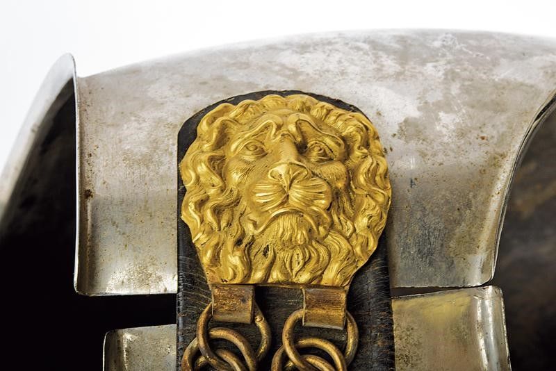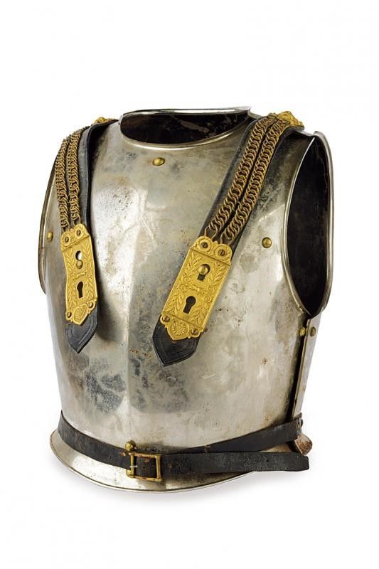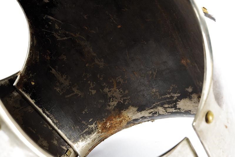 Francia, altezza 45 cm. Prima metà del XX Secolo Con leggera struttura in ferro nichelato. Fornimenti in ottone. La schiena completa di cinghie in cuoio corazzate con anelli in ottone. Alcune zone rugginose, soprattutto all'interno. Epoca Terza Repubblica.