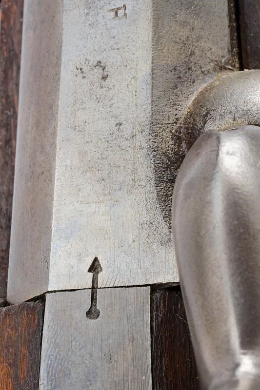 Austria, lunghezza 133 cm. Canna rigata (anima con pitting, rigatura visibile), tonda, con base ottagonale marcata 'H', alzo abbattibile marcato 'LW 8', mirino, cal. 14 mm. Batteria a molla in avanti con cartella piatta. Cassa intera in legno con fornimenti in ferro (marcati '88'), bacchetta e baionetta in ferro.