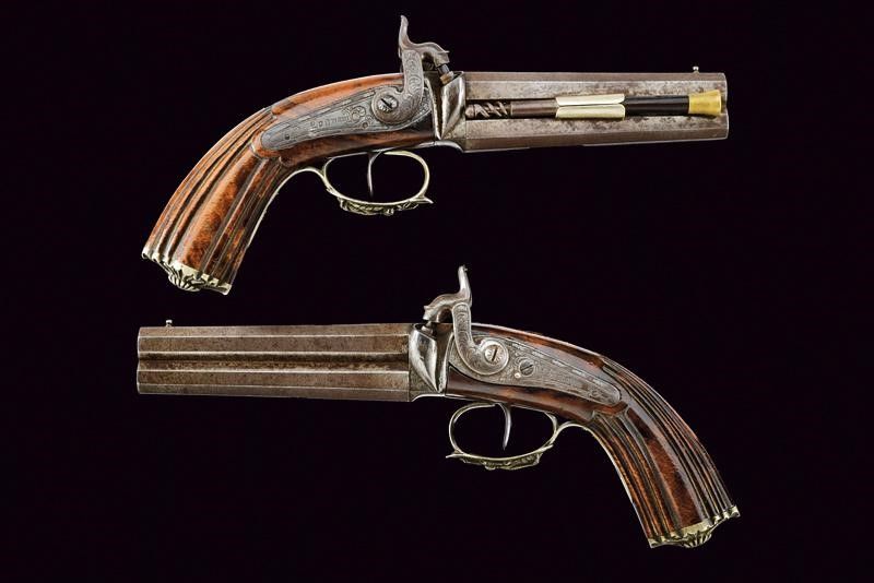 Interessante paio di pistole a luminello a canne sovrapposte di Legnani