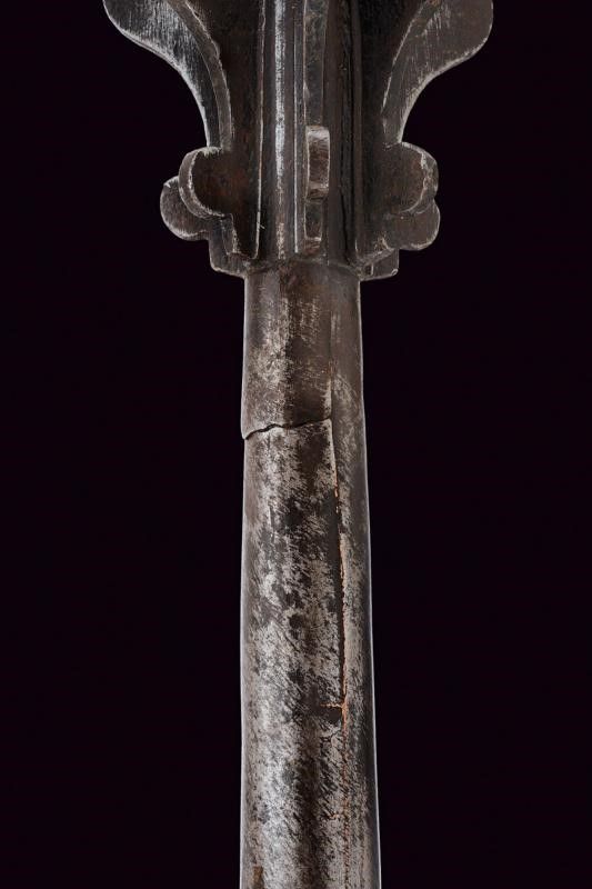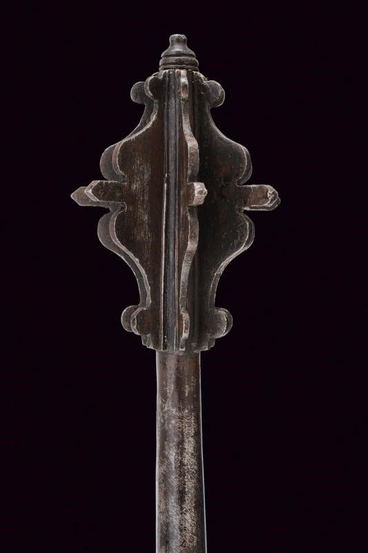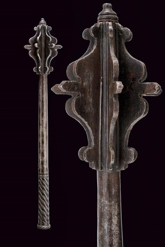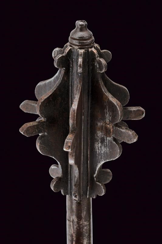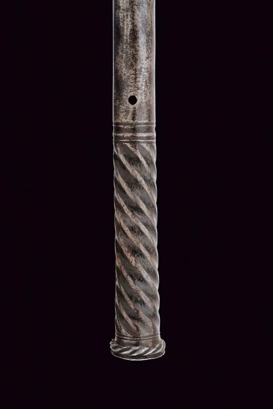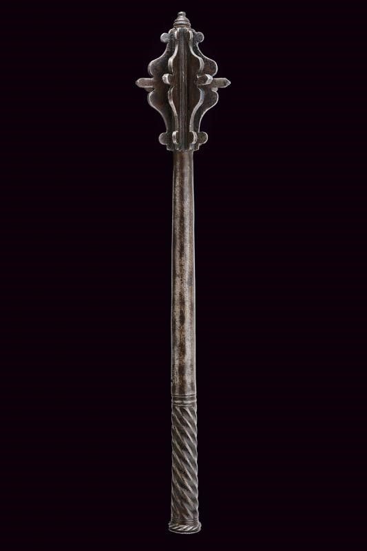 Germania, lunghezza 55.8 cm. 1580 circa Testa a sette coste munite di cuspidi e gobbe, fusto cilindrico con piccolo danno sotto alla testa. Impugnatura intagliata a spire, la base rialzata e lavorata a fingere il tortiglione, fusto cavo all'interno per ospitare un'asta di prolungamento. Fori per la cinghia.