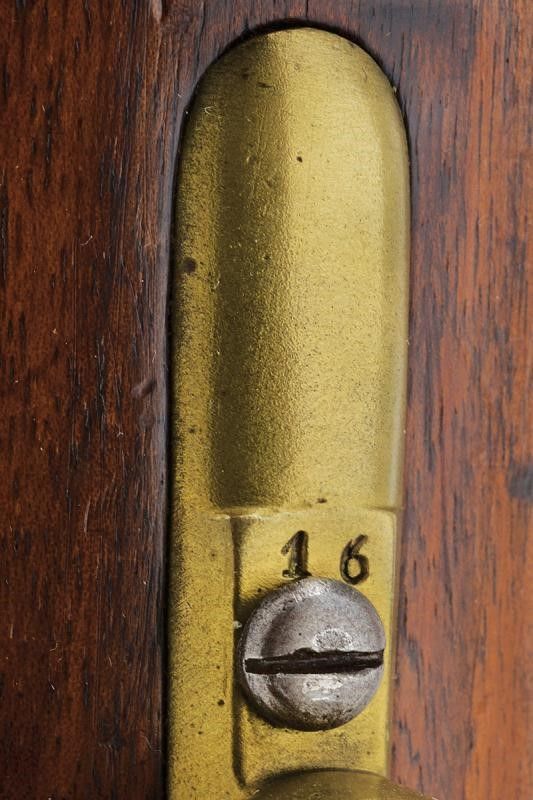 Austria, lunghezza 43 cm. Canna tonda liscia con base quadra recante vari punzoni sul lato sinistro, poco leggibili, cal. 16.9 mm. Batteria a luminello a molla in avanti con cartella datata '859' e con punzone imperiale. Cassa intera in legno con fornimenti in ottone e ferro.