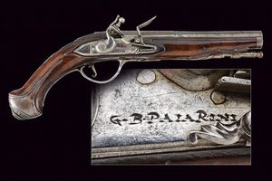 Brescia, lunghezza 26.5 cm. Canna liscia a due ordini, prima ottagonale e nervata, recante la firma 'LAZARO LAZARINO' [..]