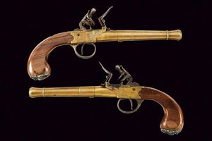 Europa, lunghezza 28 cm. Canne lisce a cannoncino, in ottone, svitabili, cal. 12 mm; castelli del tipo boxlock [..]
