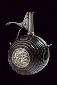 Sassonia, dimensioni 7.9 x 12.8 cm. Corpo circolare convesso, in legno, piatto sul retro, lavorato ad anellature [..]