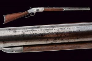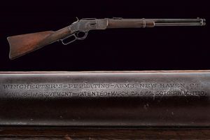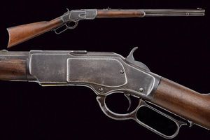 USA, lunghezza 110 cm. 1873 Canna rigata tonda, dotata di mirino ed alzo regolabile mancante del cursore, marcata [..]