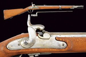 Austria, lunghezza 104.5 cm. Canna tonda rigata (anima con leggero pitting e rigatura ancora visibile), con culatta [..]